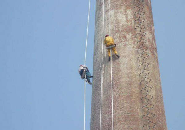 大型煙囪每隔一段時間就需要對其進行檢查維修加固,因為混凝土和磚墻的溫度收縮,產生的收縮應變不一致,久而久之會導致混凝土和磚縫交接處產生裂縫,如有放置不管,可能會對煙囪結構造成破壞,所以要定期對煙囪進行修補加固。